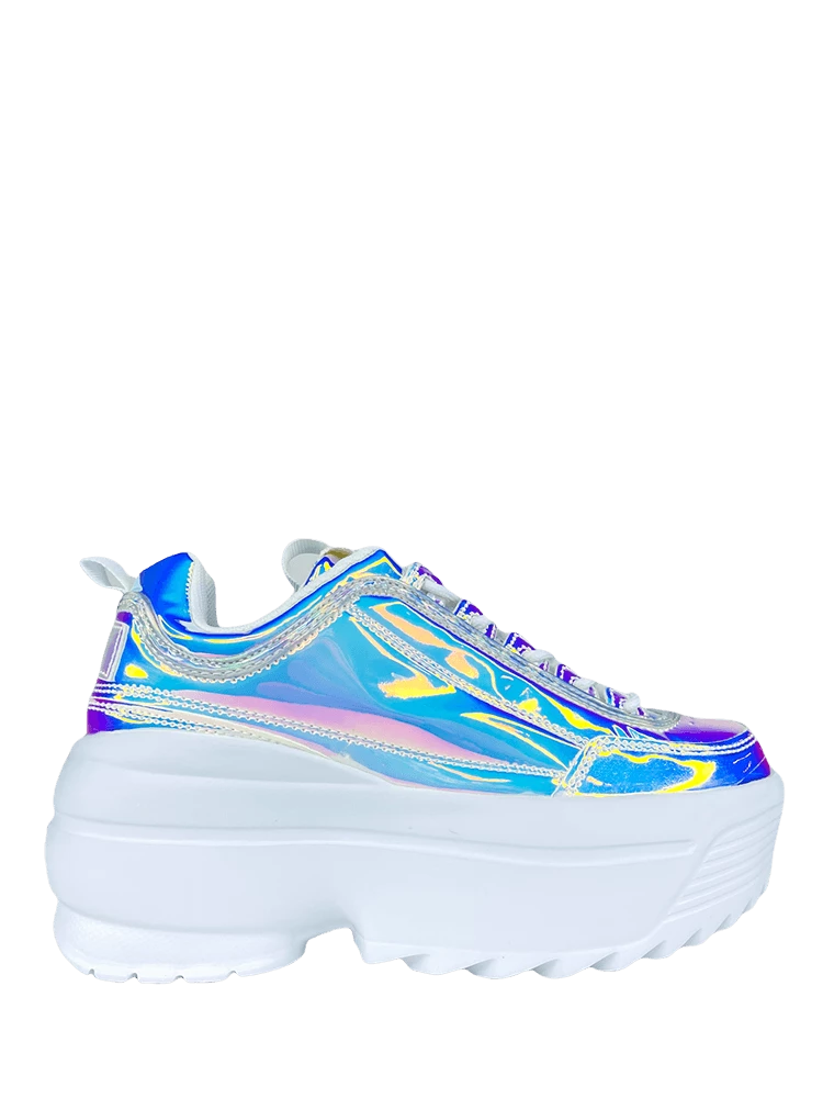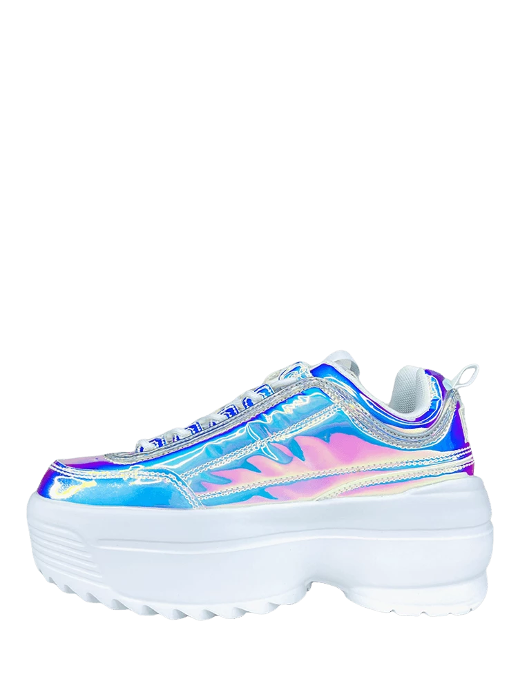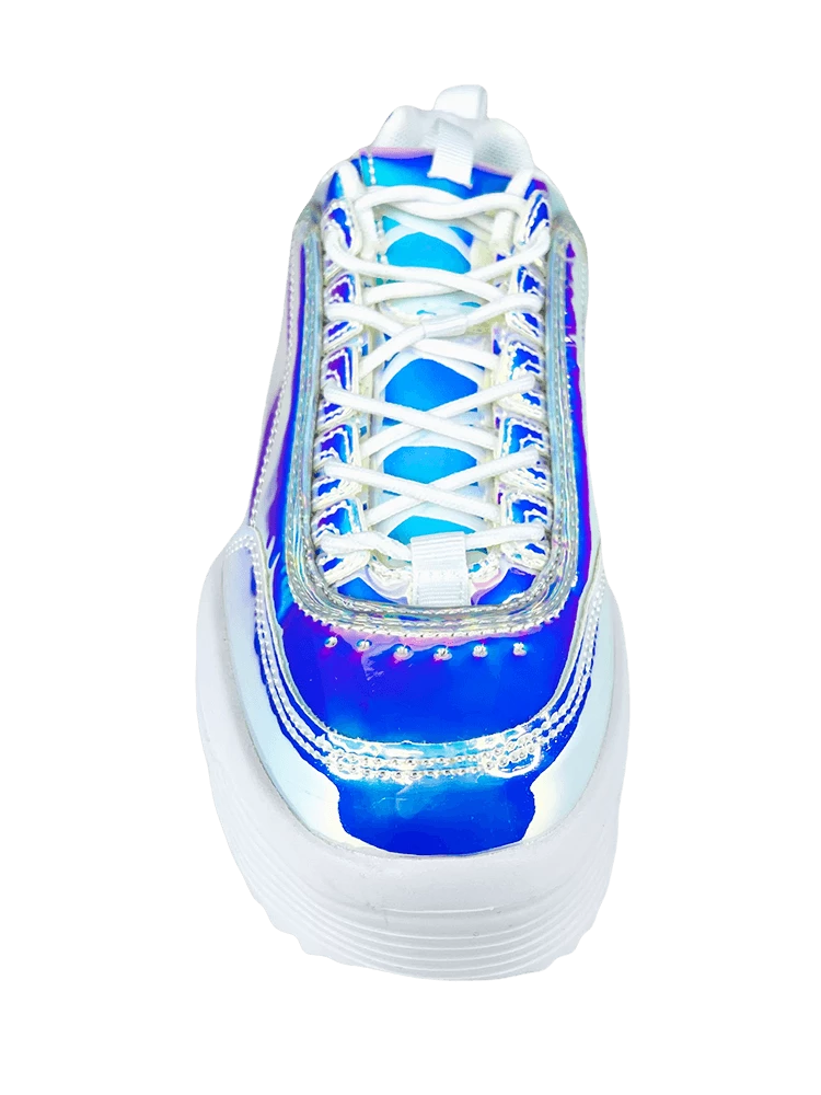 Atlantis iridescent PU upper. White round laces. White rubber outsole. White tricot lining.Â
