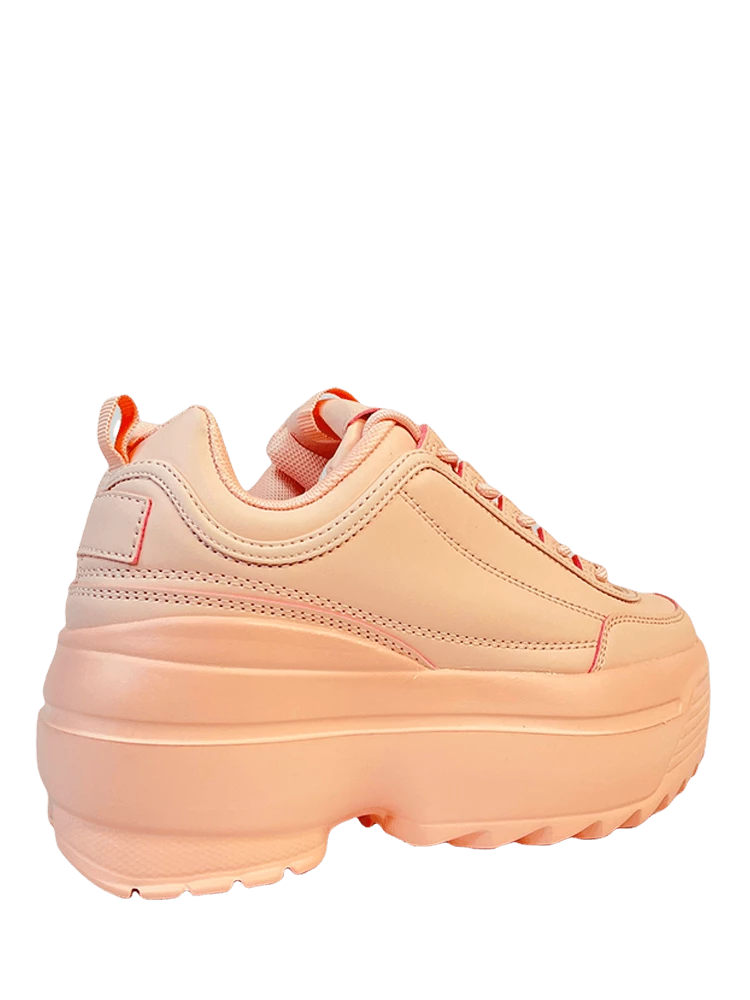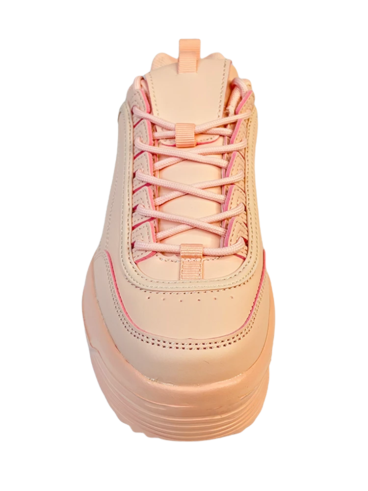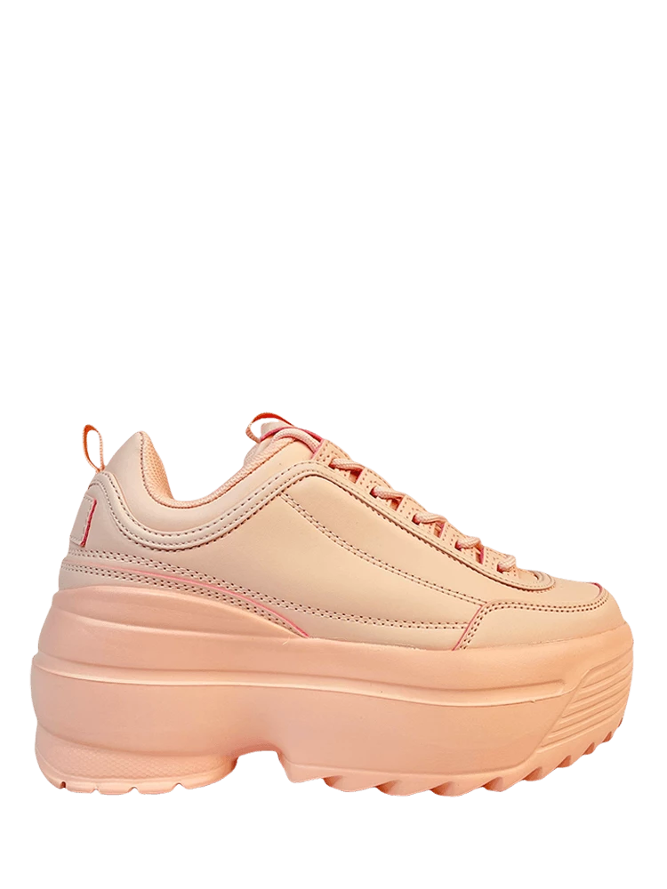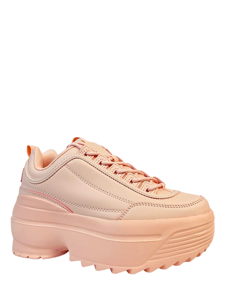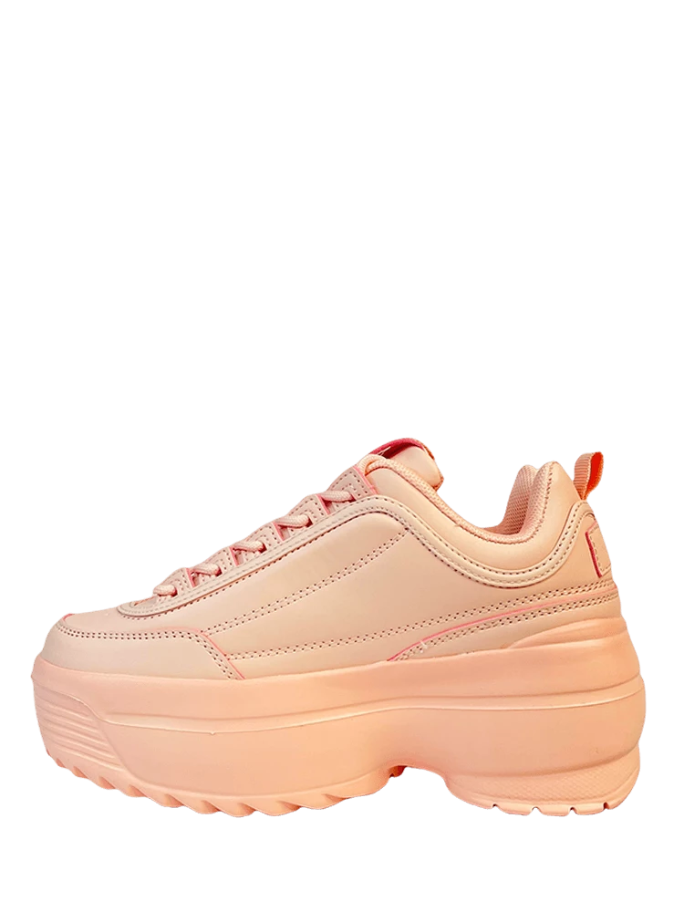 Pink PU leather upper. Pink rubber outsole. Pink woven laces. Pink tricot lining.Â