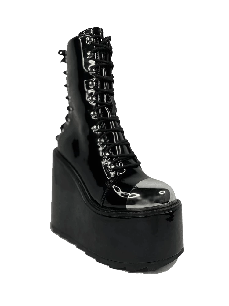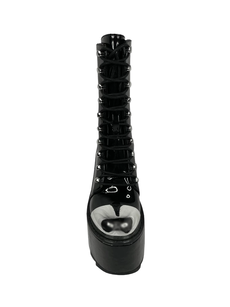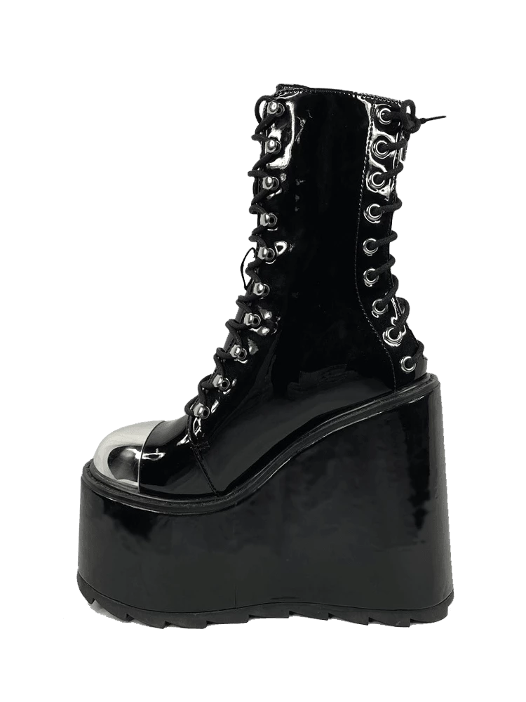 Platform Boot with Front & Back Lace Up + Metal Toe.