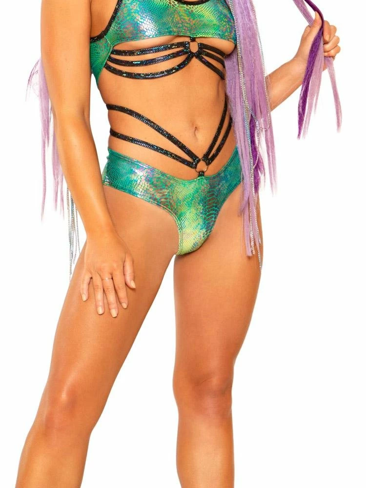Teal Tie-Dye Python/Black Strings & Rings Bottoms