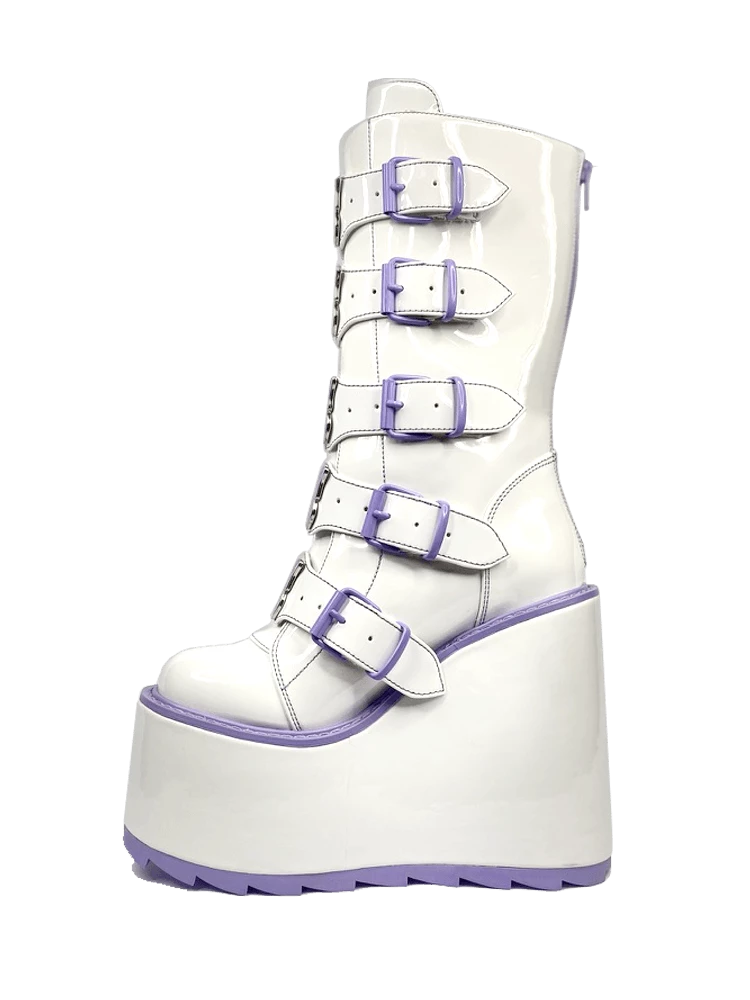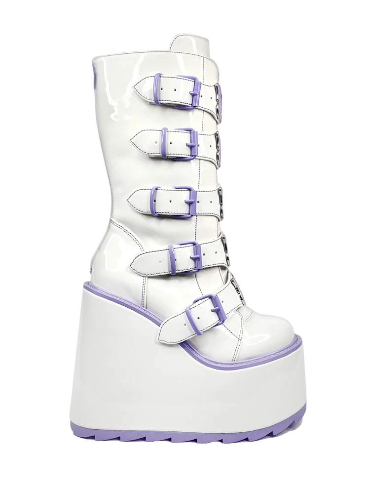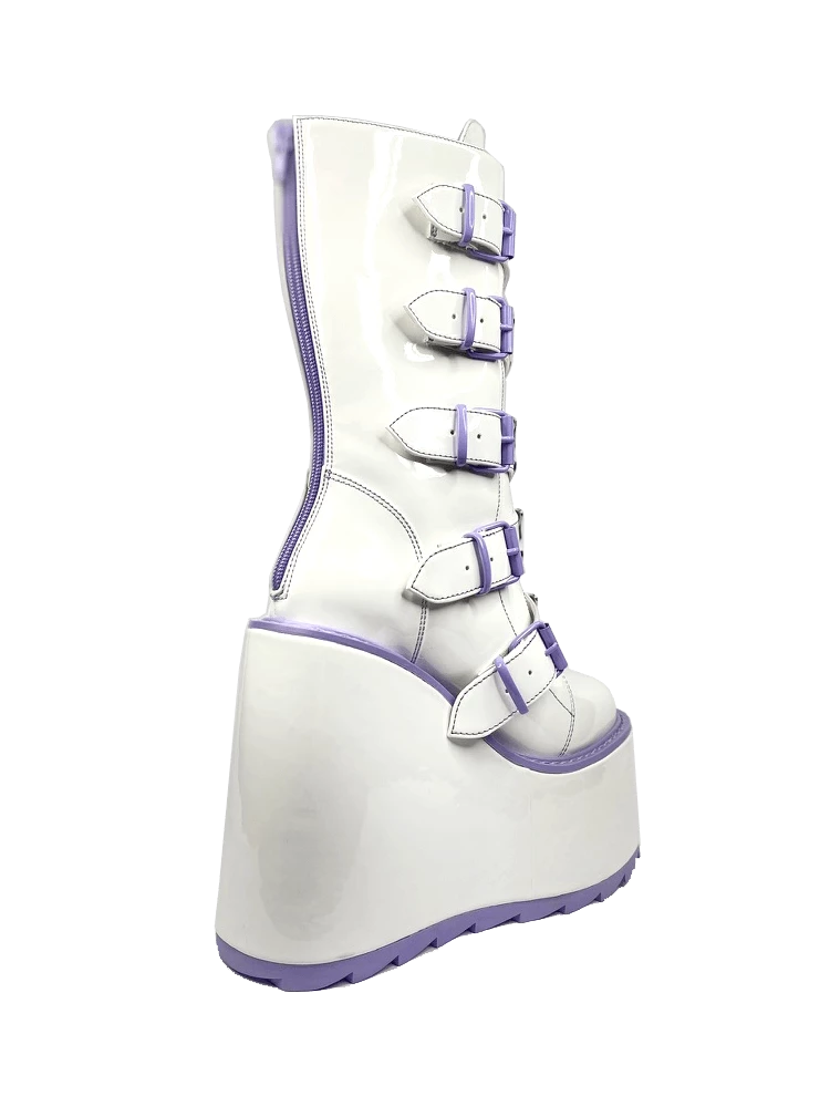 - EVA Platform with White Vegan Patent Leather Wrap