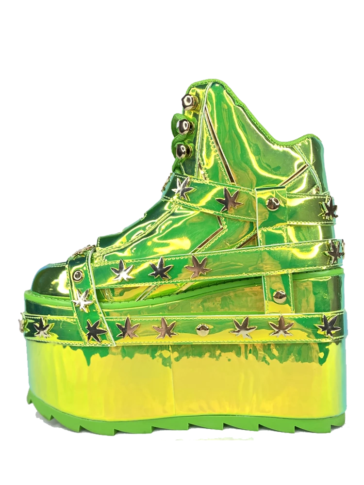 Space invaders wear platforms too. Take your colorful personality and fashion sense to the intergalactic realm as you step out onto festival grounds HIGHER.